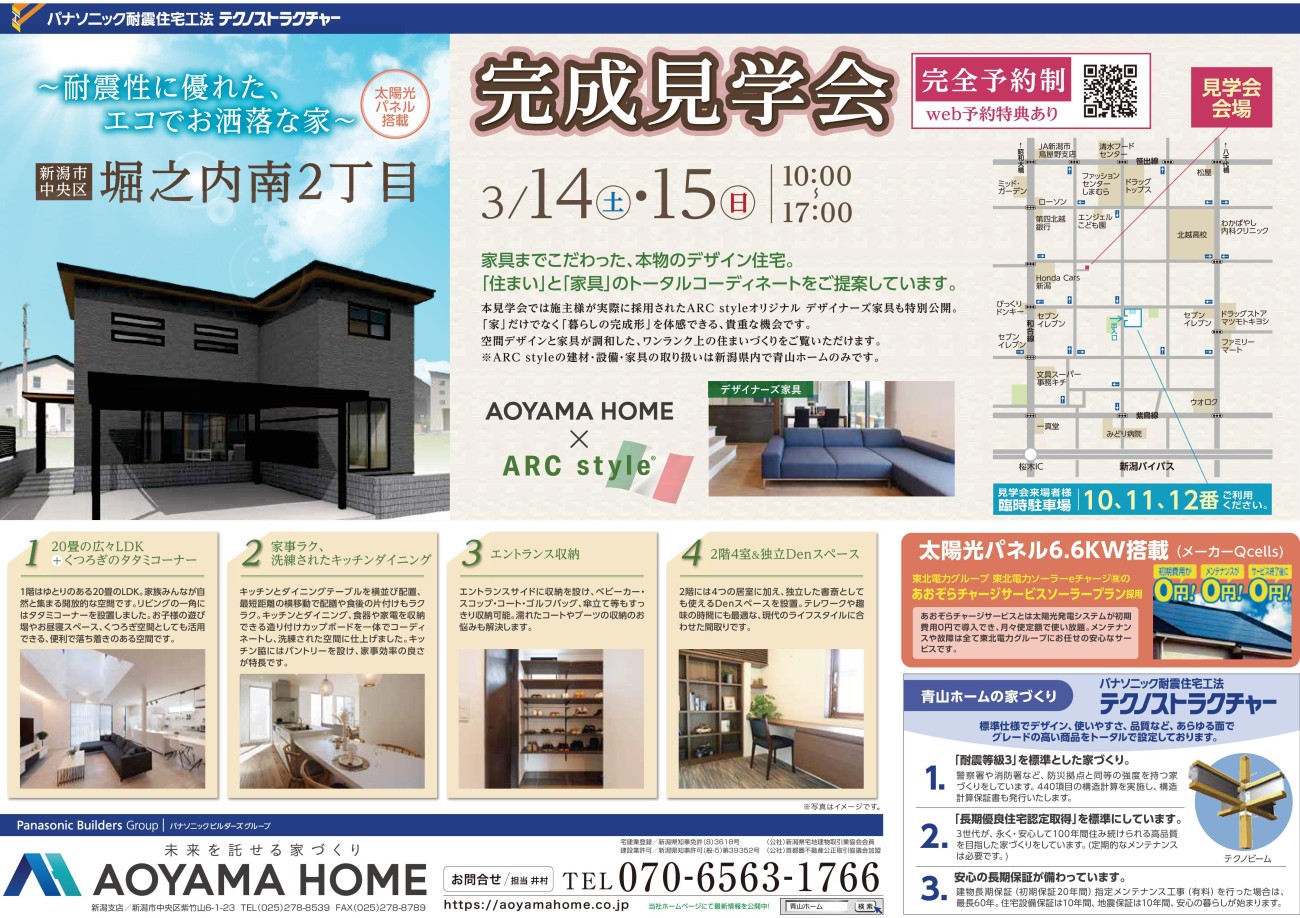 3月14日(土)15日(日)の2日間、新潟市中央区堀之内南2丁目で完成見学会を開催いたします。